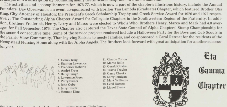 School Year 1977 December 15, 2025 James Kirkwood In 1977 the Officers of the Eta Gamma chapter were John W. Osby, President