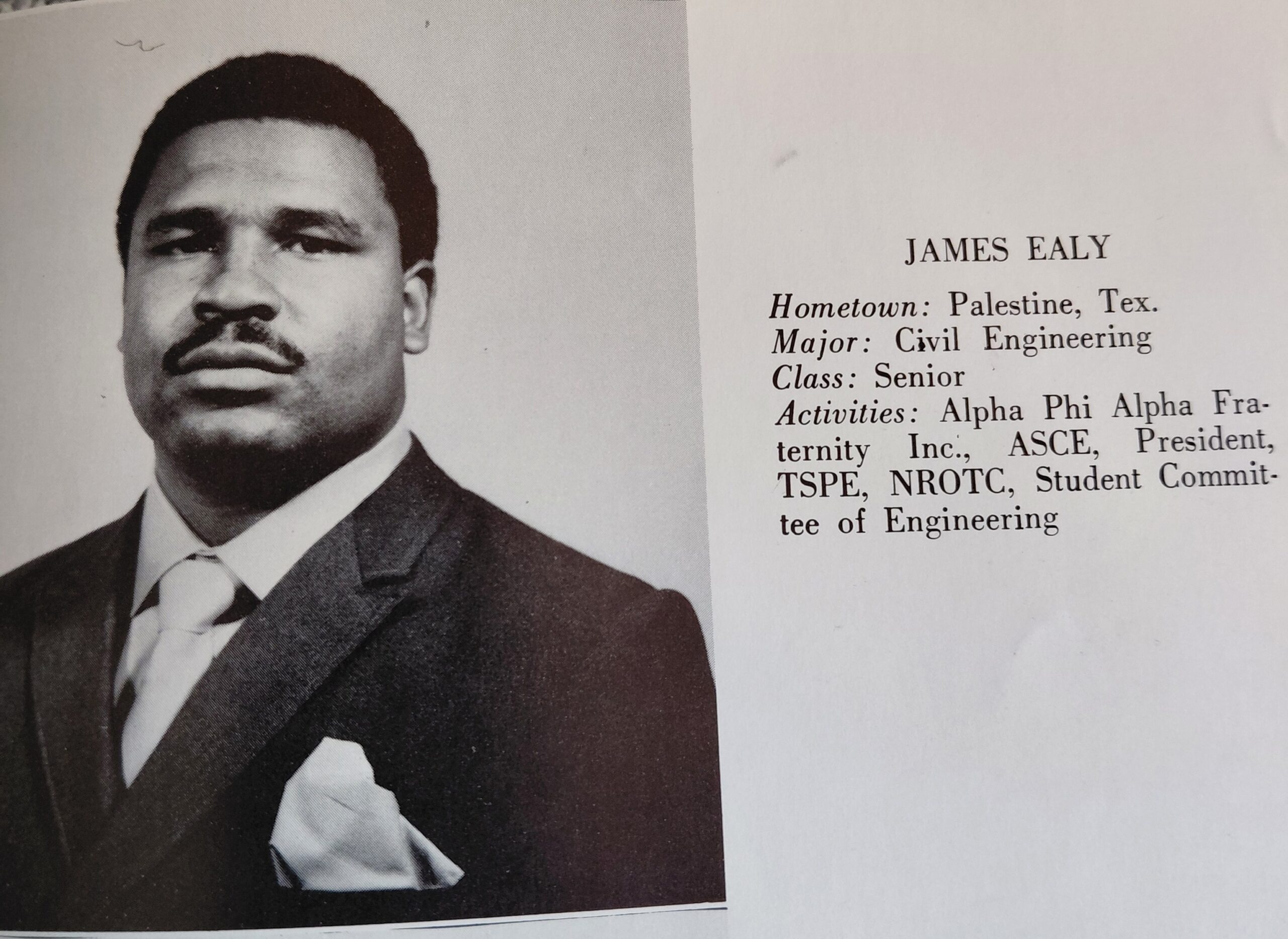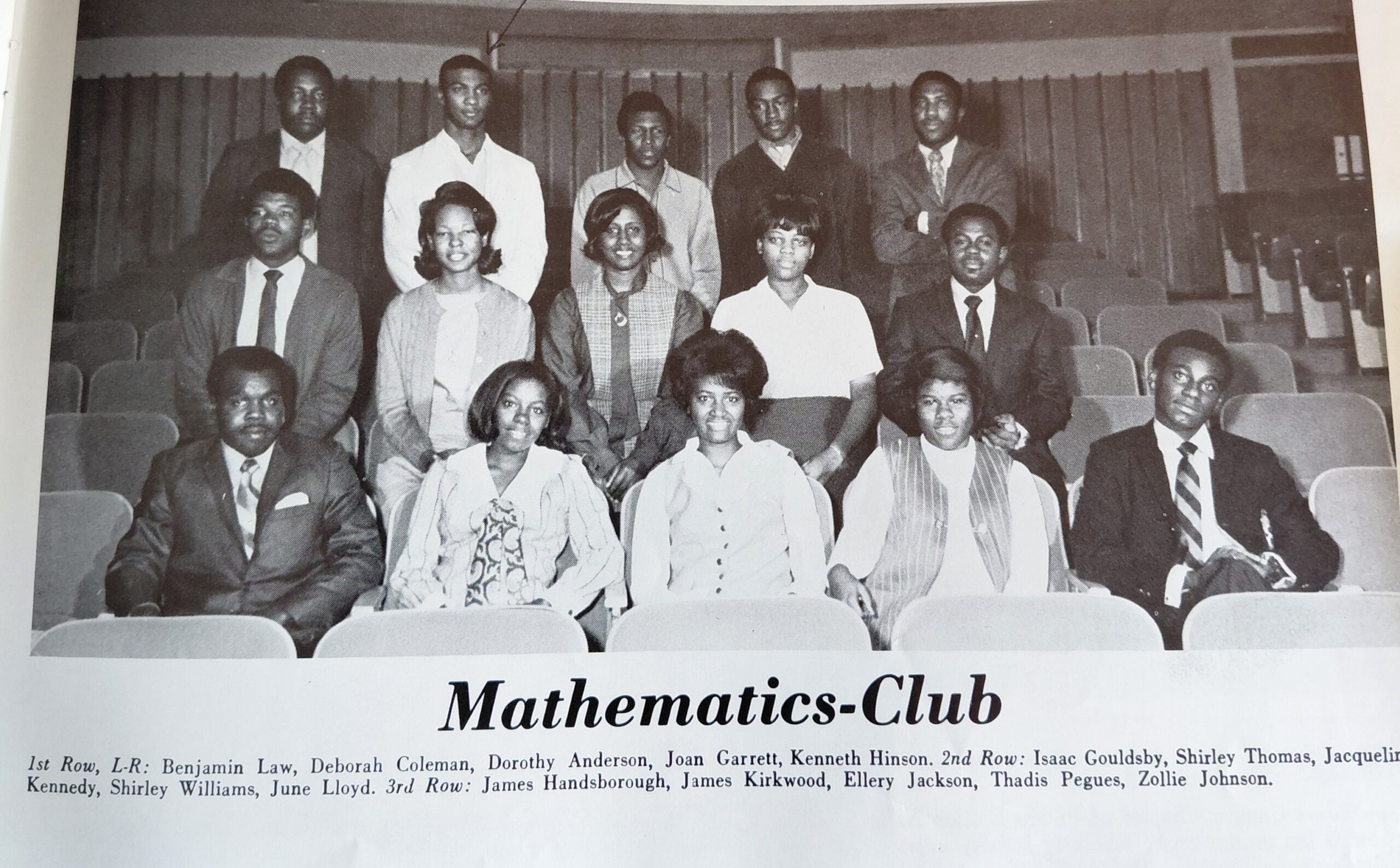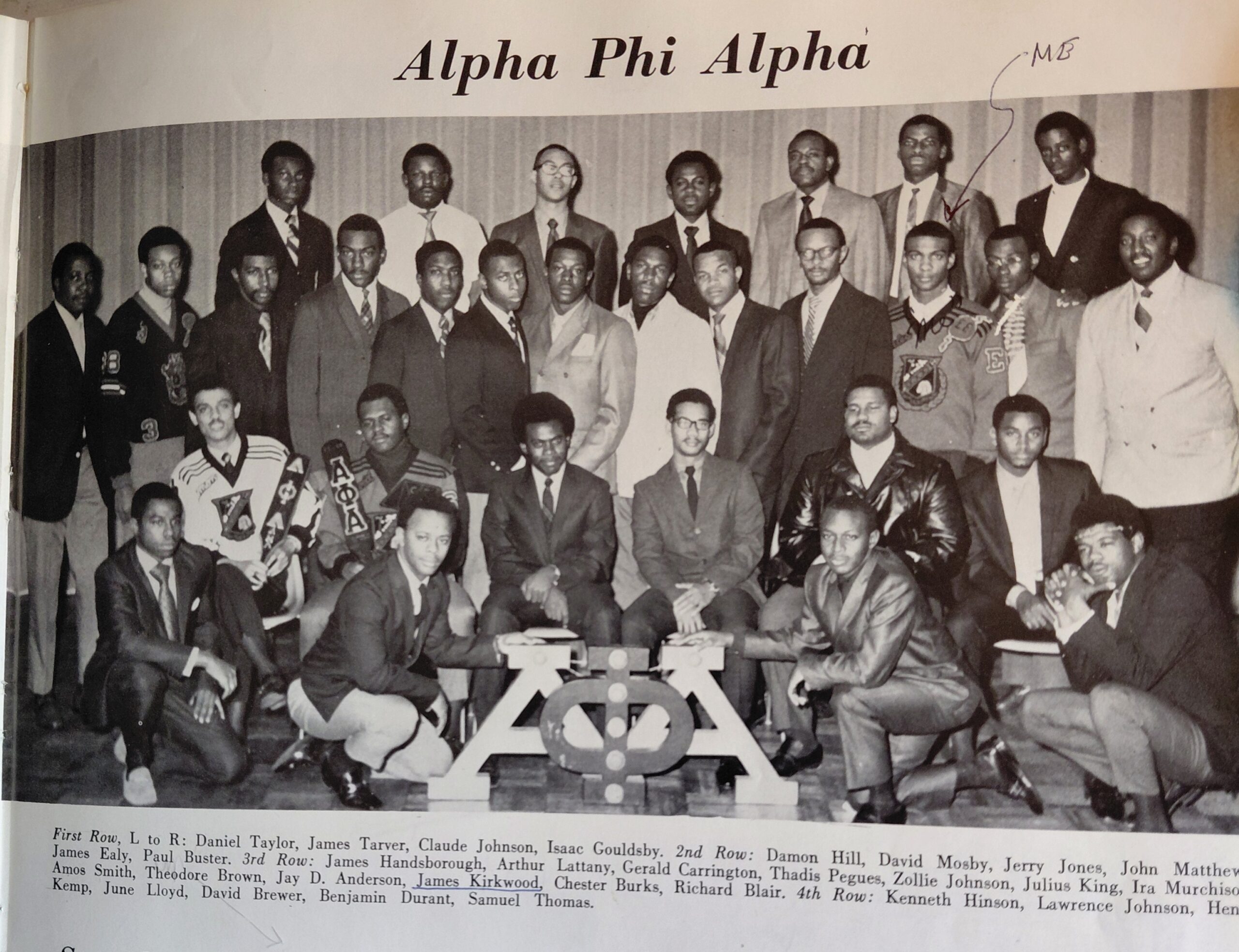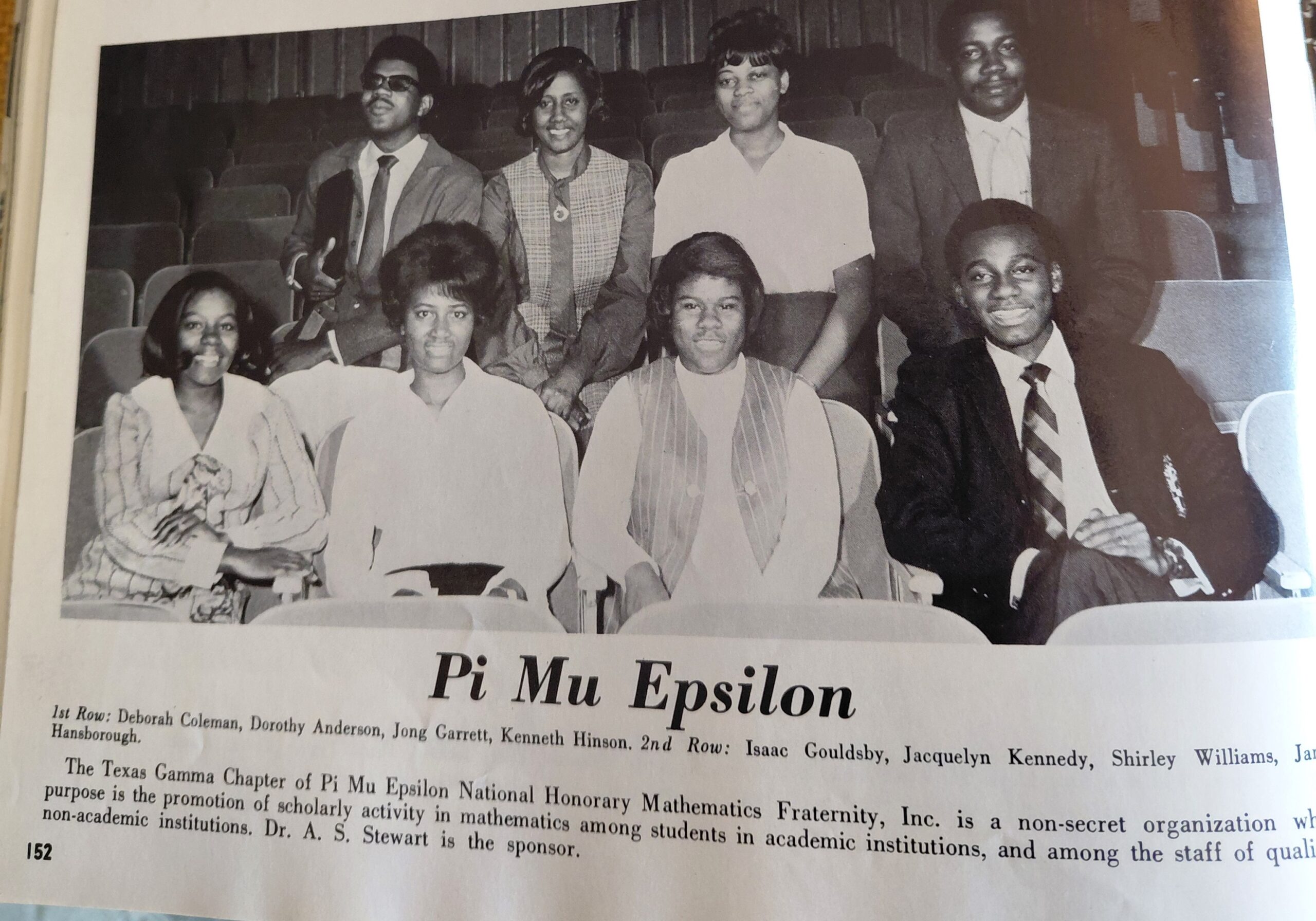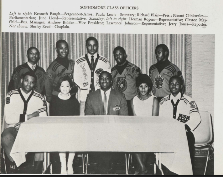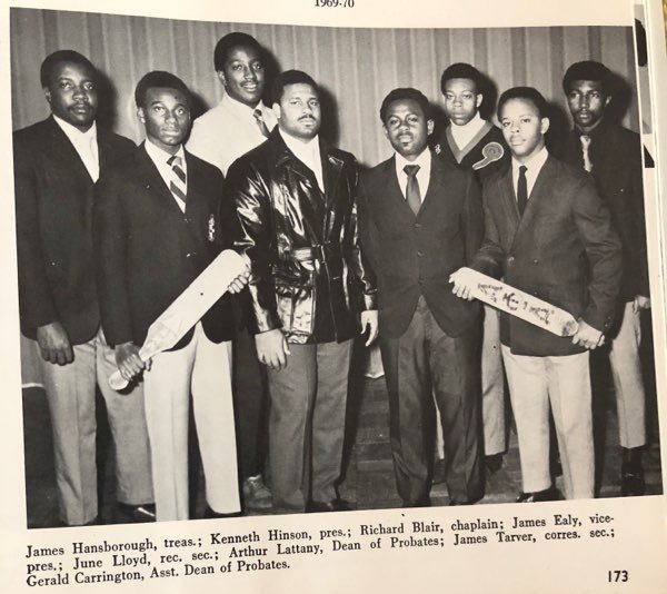 In 1969 – 1970, the Officers of the Epsilon Iota extension chapter were Kenneth Hinson, President; James Ealy, Vice-President; James Hansborough, Treasurer; Richard Blair, Chaplain; June Lloyd, Recording Secretary; James Tarver, Corresponding Secretary; Isaac Gouldsby, Dean of Pledges; Arthur Lattany; Dean of Probates; Gerald Carrington, Asst. Dean of Probates.