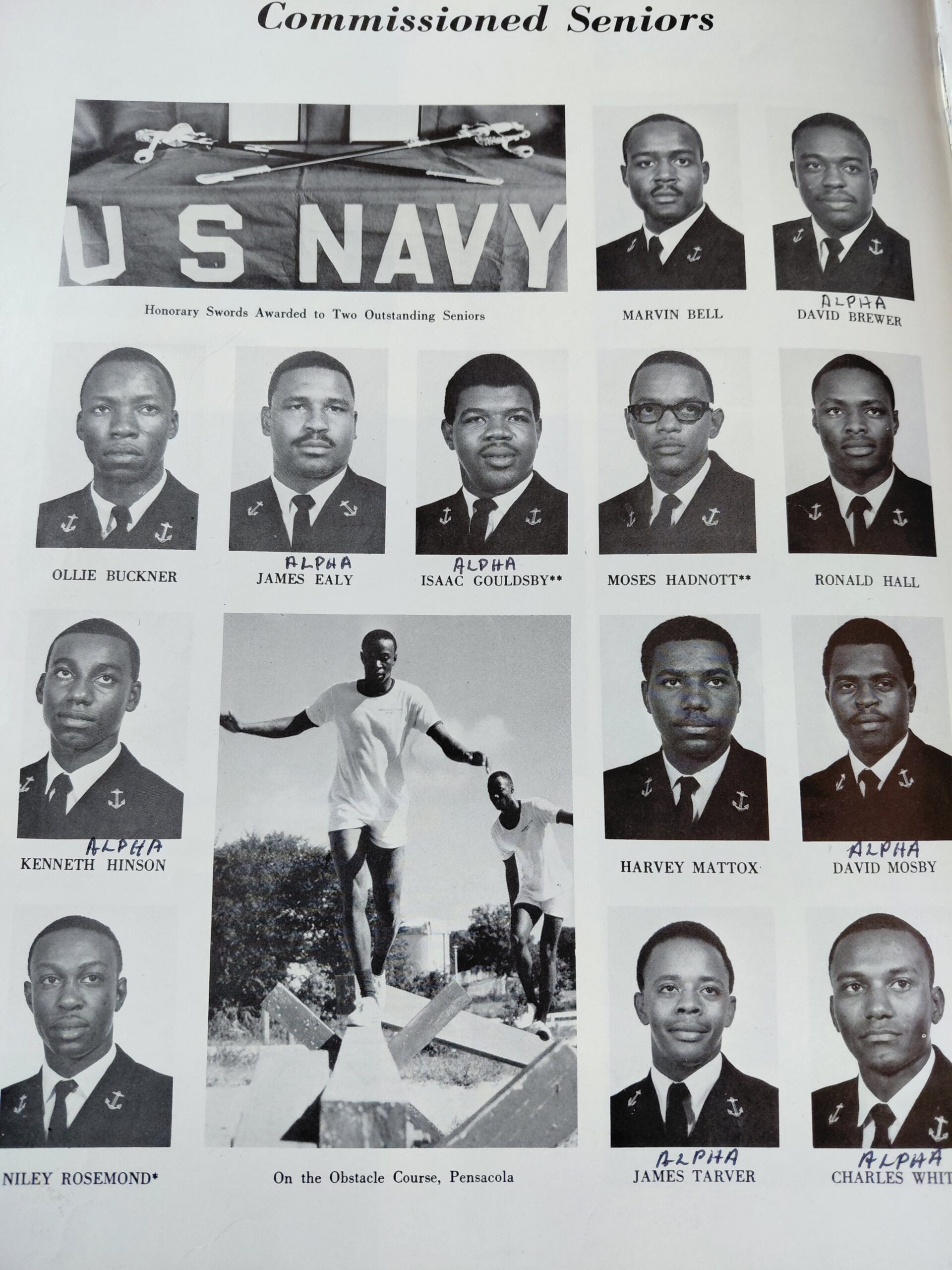 Seven of the thirteen Naval Graduating Senior were Alphas, they were known as the Prairie View Golden Thirteen. Five went on to be promoted to CAPT (Kenneth Hinson, James Tarver, David Mosby, James Ealy, and Charles White) and one was promoted to Vice Admiral, David Brewer.