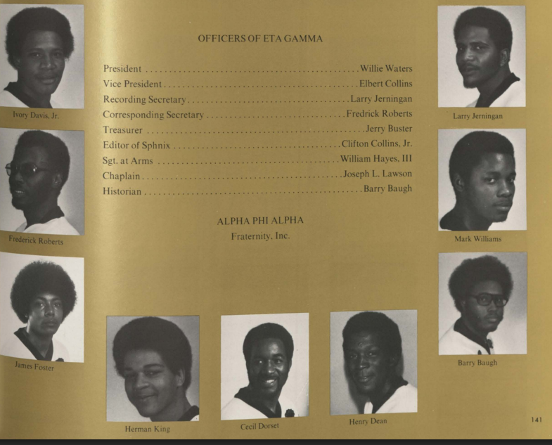 School Year 1975 December 15, 2025 James Kirkwood In 1975 – 1976, the Officers of the Eta Gamma chapter were Willie Waters, President